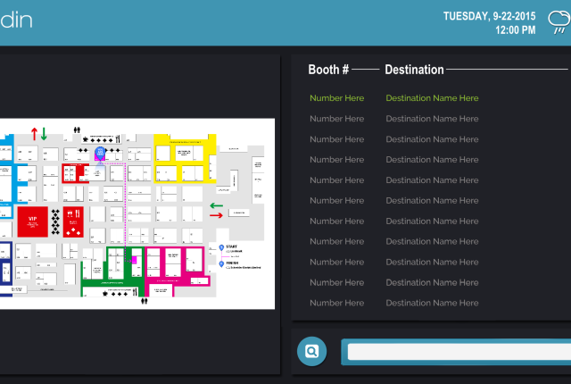 30 Sep 2015 12:41 PM Expo / booth / conference wayfinding app Campus Directions, digital directions, digital maps, digital signage, Directions, Here2There Software, Interactive Wayfinding, Touch screen, Wayfinding SQ Hospitality The image below is a sample of a complimentary app Here2There Software created for an exhibition floor at a digital signage expo. Gives directions to and from exhibitor booths. Read More